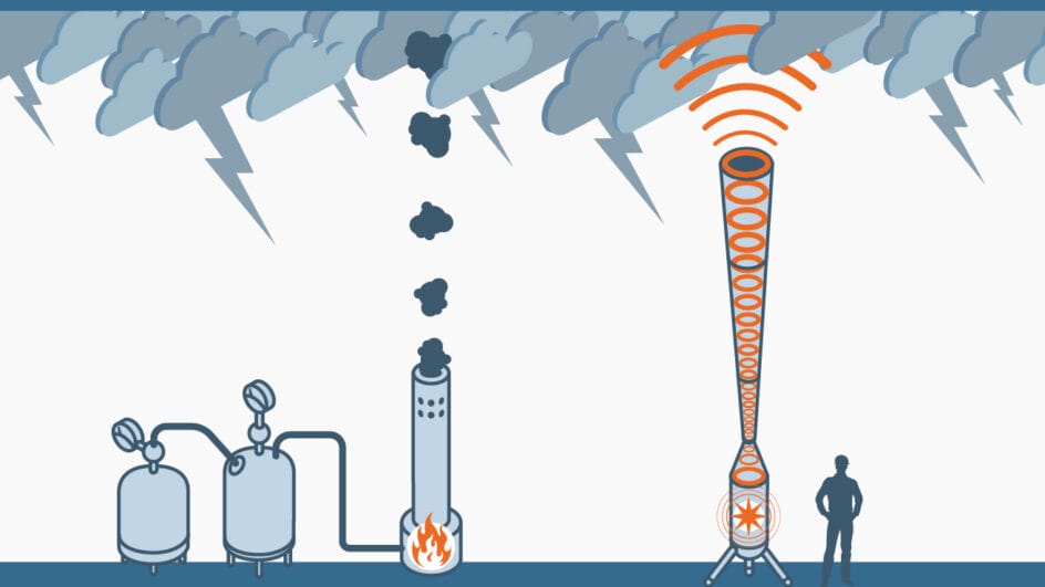 Esse método gera ondas hipersônicas a cada sete segundos, formando camadas de energia na atmosfera que atingem acima de 10 mil metros. Essa energia fragiliza a célula de granizo, desestruturando o gelo ainda na nuvem e fazendo com que ele caia em dimensões menores, que derretem durante a queda, resultando apenas em chuva na área protegida.