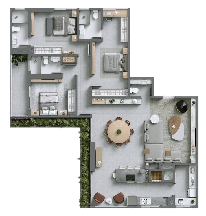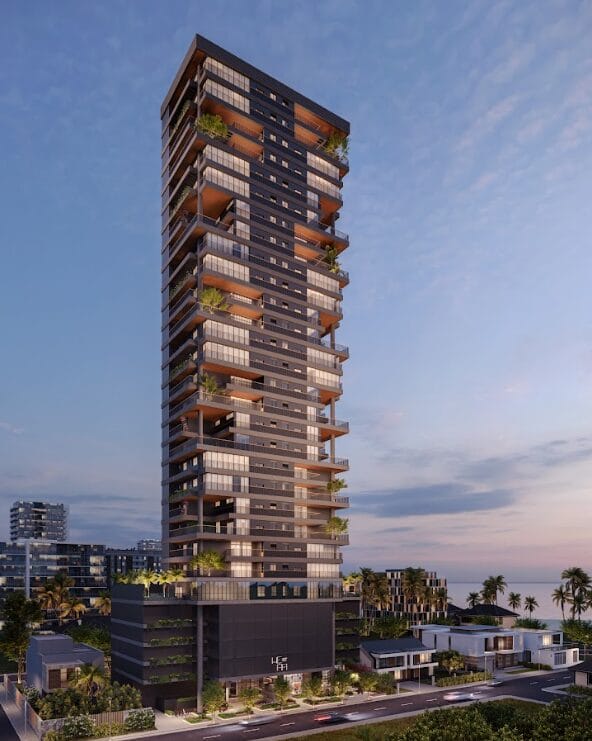 Com 48 apartamentos entre 152 e 197 metros quadrados de área privativa, ticket médio superior a R$ 3,7 milhões e valorização acumulada de 35% desde o lançamento em 2022, o Hera Phacz Home fica a 100 metros da Praia de Perequê e tem 110 metros de altura.