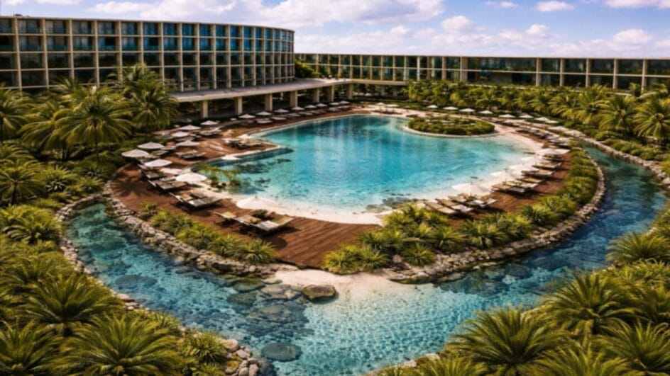 O empreendimento terá três restaurantes, dois bares, piscina externa, spa com piscina coberta e aquecida, academia, quadras de padel, de tênis e de futebol, além de uma pista de pedal kart infantil e Clube Nep para crianças. O empreendimento também estará apto para receber os mais diversos tipos de eventos e terá um salão e três salas de reuniões.