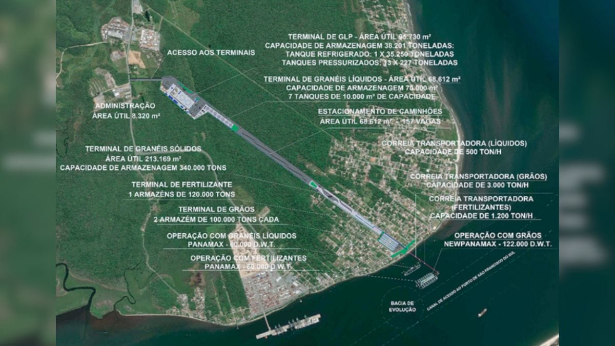 O porto terá investimento de R$ 3 bilhões e deve levar cerca de três anos para ficar totalmente pronto.
