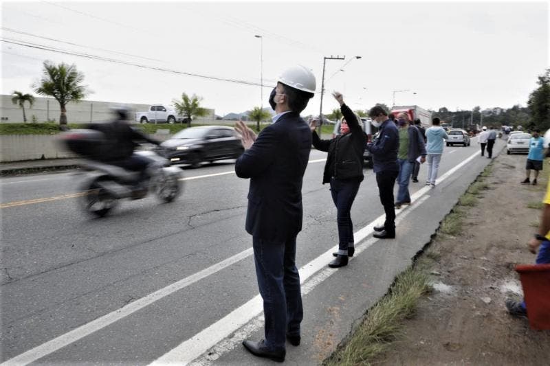 – Para ir sentido Massaranduba, é preciso pegar a saída 51, passar por baixo do Viaduto da Mafisa, ficar na pista da esquerda e atravessar o novo viaduto próximo ao Parque das Itoupavas para acessar a SC-108;