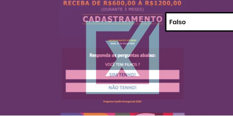 É falso o formulário divulgado por meio de uma mensagem de WhatsApp para o recebimento do auxílio emergencial a pessoas de baixa renda durante a crise do novo coronavírus. Os sites com o formulário estão registrados fora do Brasil, em servidores que comportam outros endereços de internet em português e sem informações sobre seus proprietários.