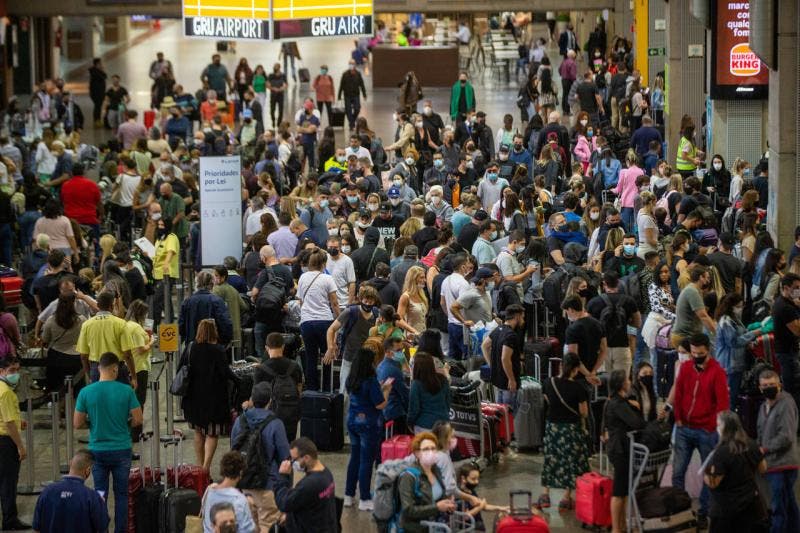 A pandemia de Covid-19 causou o cancelamento de quase 5.000 voos em todo o mundo desde a véspera do Natal, segundo o site FlightAware. Até as 10h deste domingo, havia cinco voos domésticos atrasados e nenhum cancelado, segundo a GRU Airport.