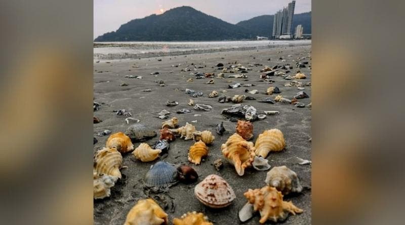 > Como são as conchas que cobriram a praia em Balneário Camboriú; veja fotos e vídeos