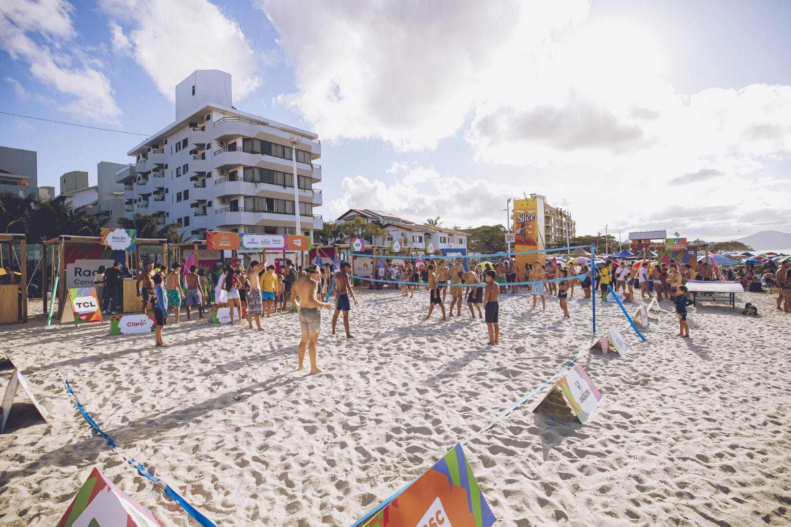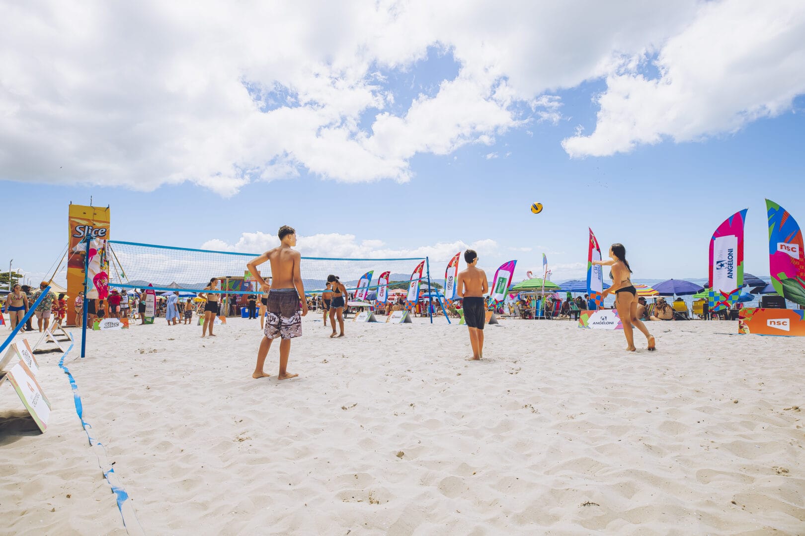A praia de Canasvieiras foi palco de muita energia, esporte e diversão no último fim de semana com a Arena Poliesportiva do Conexão Verão. Entre os dias 23 e 25 de janeiro, das 10h às 18h, o público que passou pelo Norte da Ilha pôde vivenciar uma programação gratuita com esportes pé na areia, como vôlei e futevôlei, chute a gol, frescobol, futmesa, pebolim humano e parede de escalada, o que reforçou a proposta do evento de conectar pessoas, marcas e experiências ao melhor do verão catarinense.
