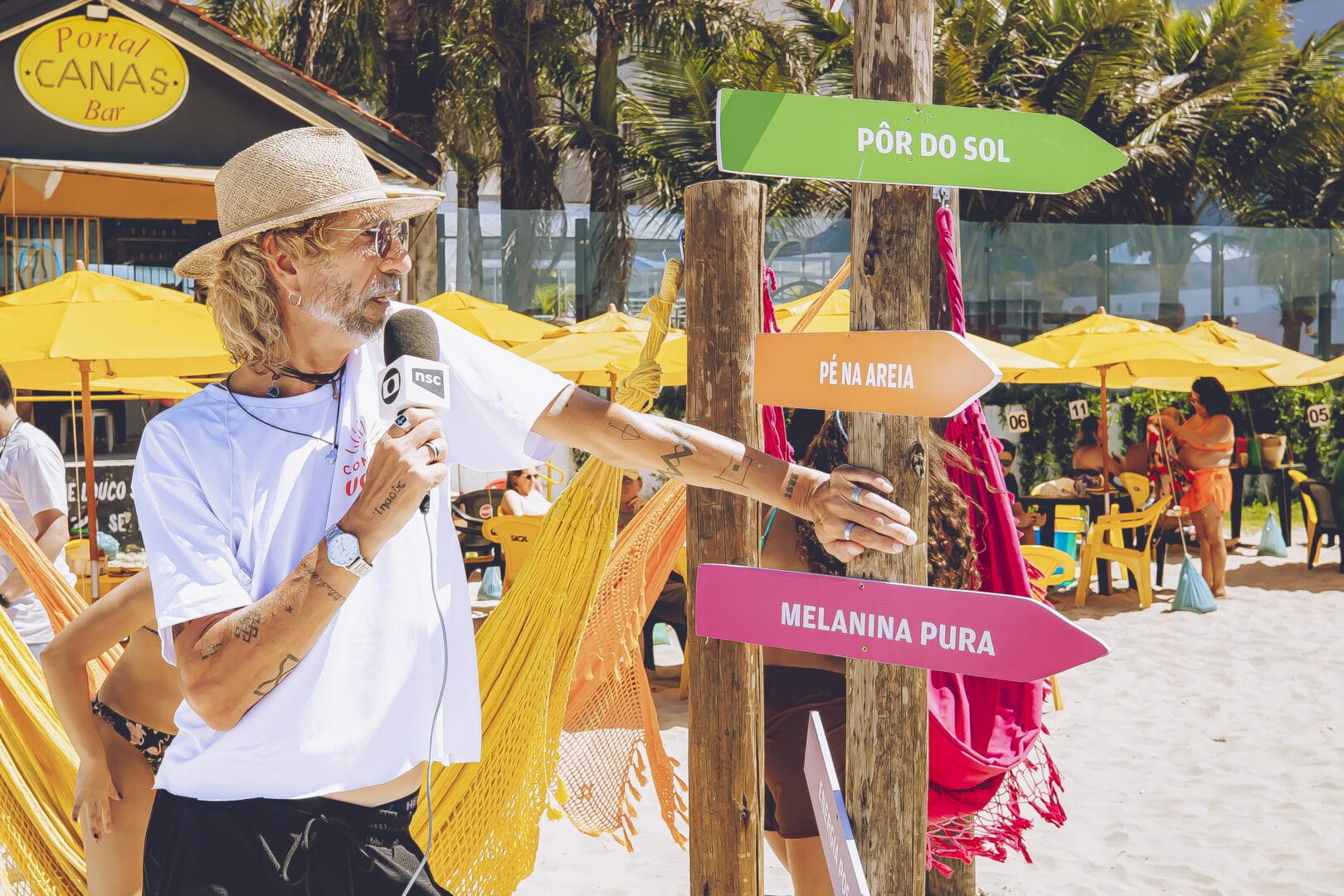 Além das atividades esportivas e interativas na arena, o Conexão Verão ganhou destaque na programação da NSC TV com um programa exclusivo, exibido no sábado (24), direto da areia de Canasvieiras. Conduzido por Edsoul, o programa contou com a presença da cantora Amandah Amancio, que animou a transmissão com música e alto astral, além da participação da drag Suzaninha em um divertido pebolim humano, e o Pi e Tete que trouxeram brincadeiras na Arena, garantindo momentos de interação e descontração com o público da praia.