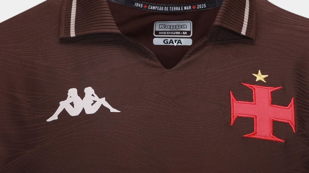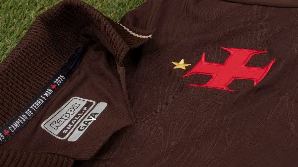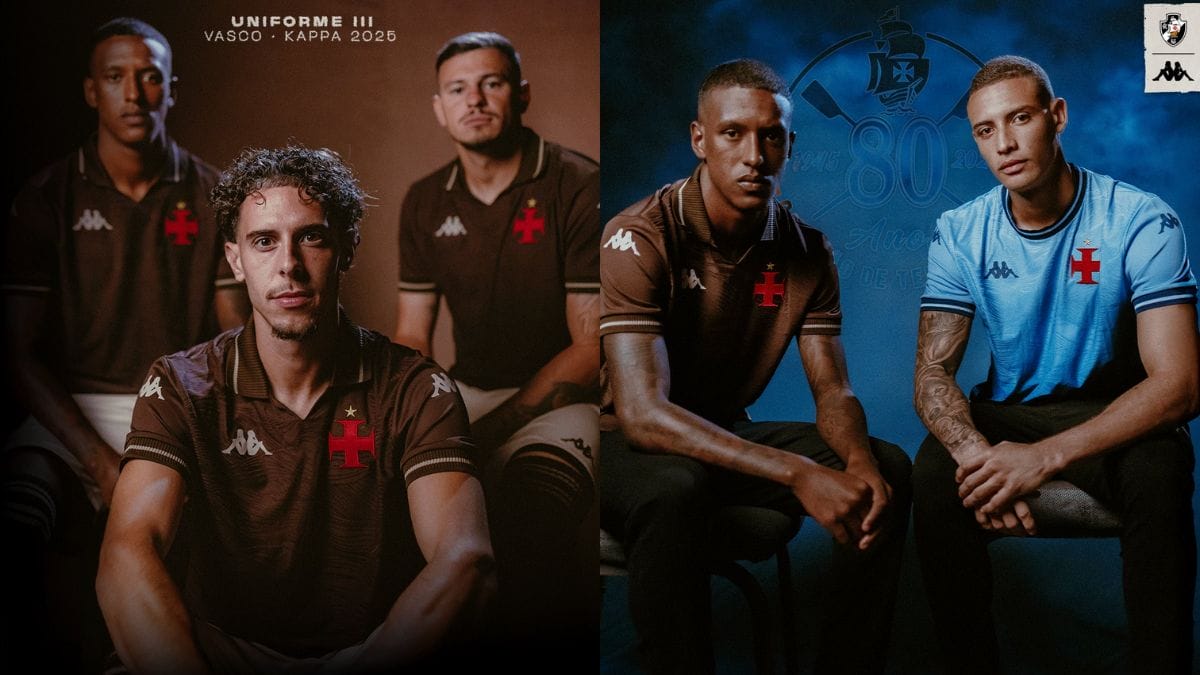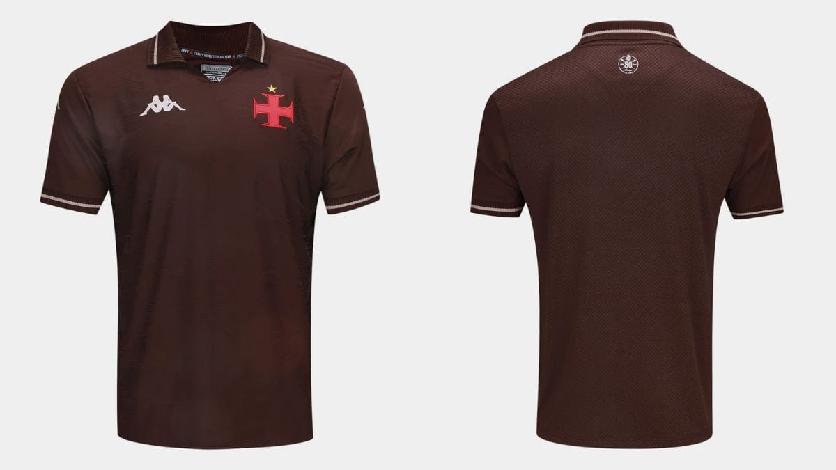 O Vasco divulgou nesta sexta-feira (17), a nova camisa três para a temporada 2025/26. O uniforme conta com a cor marrom como predominante, enquanto a do goleiro é azul. As peças fazem referência aos 80 anos da conquista de “Campeão de Terra e Mar”, quando o Gigante da Colina conquistou títulos invictos do Campeonato Carioca no Futebol e no Remo, em 1945.