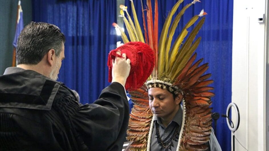 Jafé Sateré-Mawé ou Jafé Ferreira de Souza concluiu o mestrado em Direito na Universidade Federal de Santa Catarina (UFSC) recentemente. No dia 28 de julho, ele se tornou oficialmente o primeiro aluno a concluir a pós graduação em direito por meio de ações afirmativas para povos indígenas da universidade.