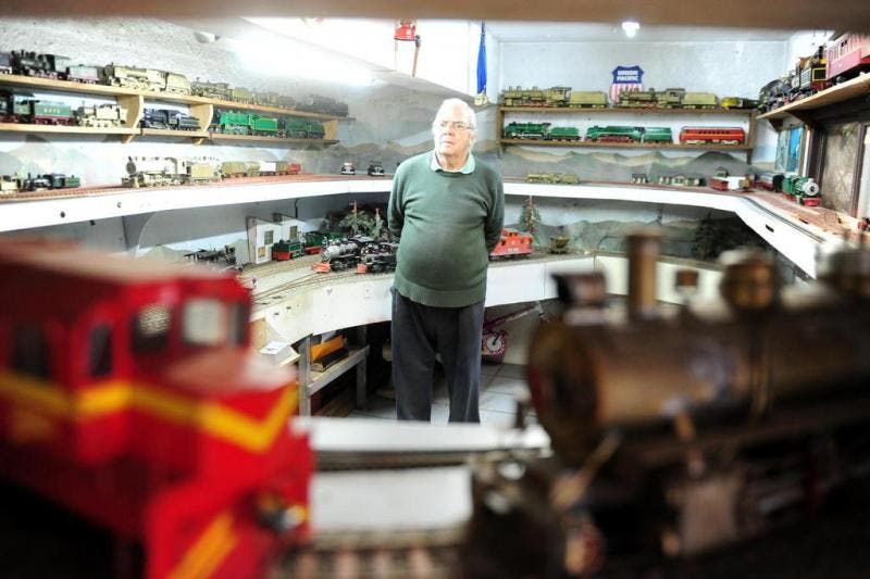 Hobby este que ganha vida em uma maquete elétrica e rodeia toda a extensão do seu canto preferido da casa, há pelo menos 30 anos. No local marcam presença as réplicas de estações ferroviárias, de vagões, locomotivas e litorinas guiadas por linhas férreas. Apenas duas delas, vindas da Alemanha, não foram fabricadas por ele.