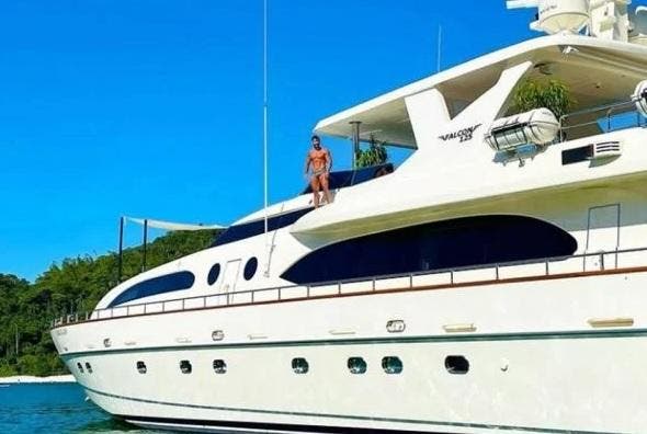 Gusttavo Lima publicou nessa quarta-feira (24), no Instagram, uma foto posando só de sunga em seu iate, em Angra dos Reis, no Rio de Janeiro. O cantor sertanejo impressionou ao mostrar a embarcação, que se chama Lady Laura IV, e é a mesmo que pertenceu ao cantor Roberto Carlos. O modelo Falcon Motor Yacht Falcon 115 possui 35 metros de comprimento, com capacidade para abrigar 12 passageiros, cinco cabines e cinco banheiros, e custa R$ 25 milhões.