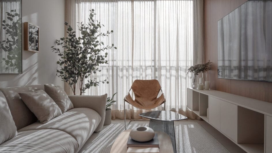 Já o segundo decorado tem assinatura da arquiteta Andressa Venturi e apresenta uma leitura marcada por elegância discreta e escolhas materiais que reforçam o acolhimento. A paleta em tons terrosos e neutros recebe texturas como lâmina de nogueira, pedras suaves e couro trançado. O resultado é uma ambientação que equilibra simplicidade sofisticada e sensação de conforto permanente. A iluminação indireta reforça esse clima, para criar pontos de destaque que valorizam peças de design selecionadas e volumes arquitetônicos.
