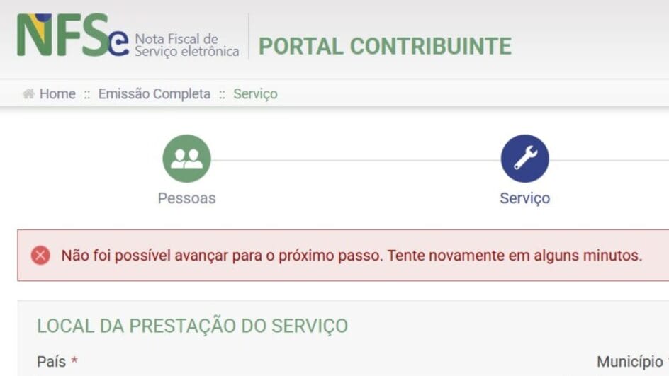 Sétimo dia com o NFS-e Nota Fiscal de Serviço Eletrônica – Portal do Contribuinte dando erro. Já são duas músicas no Fantástico e caminhando para a terceira. pic.twitter.com/KFCu9SJbAR