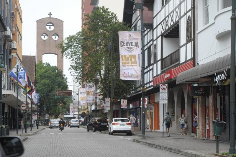 São 9h16min da manhã e uma senhora com cabelos bem branquinhos caminha de máscara pela Rua Namy Deeke em direção à XV de Novembro, em pleno Centro de Blumenau. O movimento é atipicamente tranquilo naquela que é a principal via do comércio da cidade. Congestionamento nos lugares de sempre? Nem perto. Os poucos carros que passam pela via se contrastam com algumas dezenas de pedestres com passos apressados.