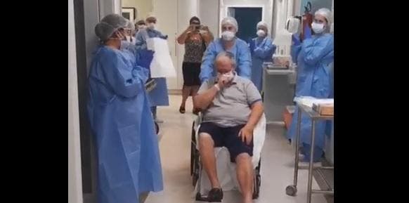 O morador de Florianópolis, Flávio Regianini, 72 anos, viveu um dia especial neste domingo (5). Após 11 dias internado por causa do novo coronavírus, o idoso se recuperou da doença e recebeu alta. Na hora de ir embora, ele foi aplaudido por funcionários do Hospital Baía Sul, de Florianópolis.