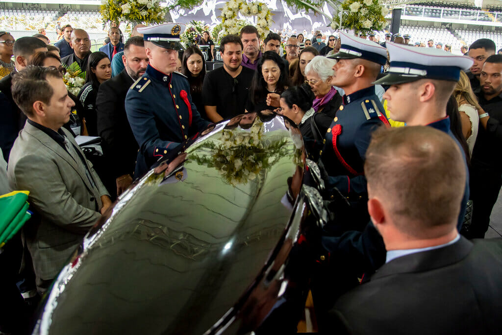 O cortejo em homenagem a Edson Arantes do Nascimento nas ruas de Santos começou por volta das 10h desta terça, após 24 horas de velório na Vila Belmiro, estádio do clube onde jogou por 20 anos. A estimativa é que mais de 230 mil pessoas tenham passaram pelo local, além de celebridades e autoridades brasileiras e internacionais, como o presidente da Fifa, Gianni Infantino, e o presidente Luiz Inácio Lula da Silva.
