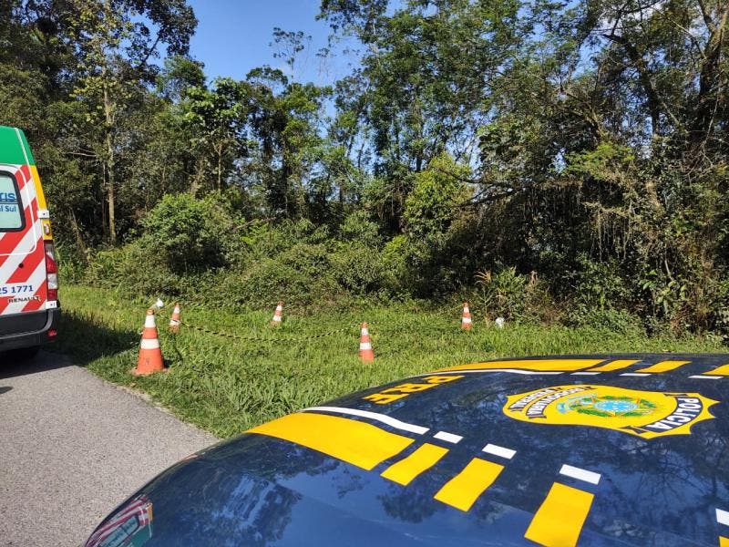 Conforme a PRF, o corpo foi encontrado pela Arteris Litoral Sul, concessionária que administra a rodovia federal, após denúncias. A vítima foi localizada em meio a um matagal, no quilômetro 19 da via, sentido Norte.