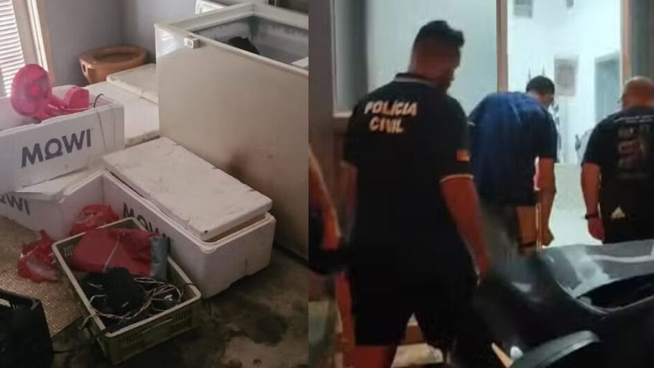 Também foi encontrado um saco de cimento no cômodo, que de acordo com o delegado, “seria usado para tentar ocultar o cadáver”.
