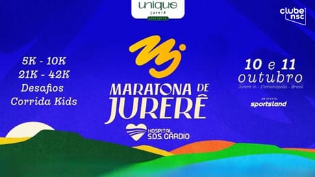 Fechamos com a prova mais exigente do calendário catarinense. A Maratona de Jurerê – Hospital SOS Cárdio 2026 acontece nos dias 10 e 11 de outubro e oferece quatro distâncias: 5 e 10 km (para iniciantes e famílias), 21 km (meia-maratona) e 42 km (a maratona completa). O percurso é conhecido por ser plano e rápido — o que o torna ideal para quem busca um índice ou simplesmente quer estrear nos 42 km com mais conforto.