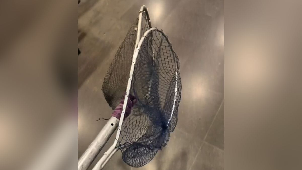 Christian conta que decidiu utilizar a escada e os puçás, uma espécie de peneira com rede de malha, para capturar a coruja. Como ela estava em cima de uma placa, o profissional se posicionou em um local que a coruja não conseguisse lhe ver.