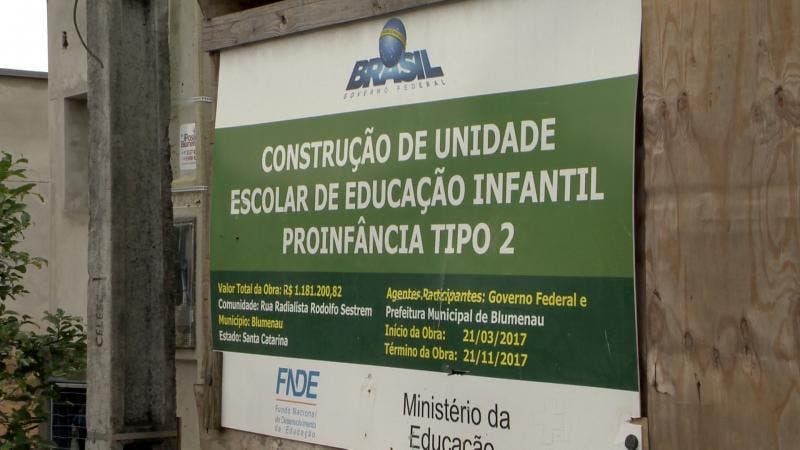 Obra cancelada pelo Ministério da Educação, segundo prefeitura de Blumenau