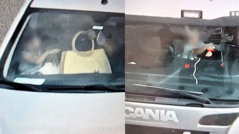 Uma criança foi flagrada segurando o volante de um caminhão enquanto o condutor manuseava um celular na BR-282, na região da Via Expressa, em Florianópolis. A situação aconteceu na manhã da última segunda-feira (13) e foi fotografada por drones da Polícia Rodoviária Federal (PRF), utilizados para fiscalizar o movimento na rodovia.