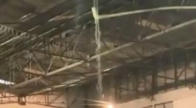 Em vídeo publicado nas redes sociais, é possível perceber não só o desabamento da calha, como também a presença de goteiras e, consequentemente, a formação de poças no piso do CT do bairro Boa Vista.