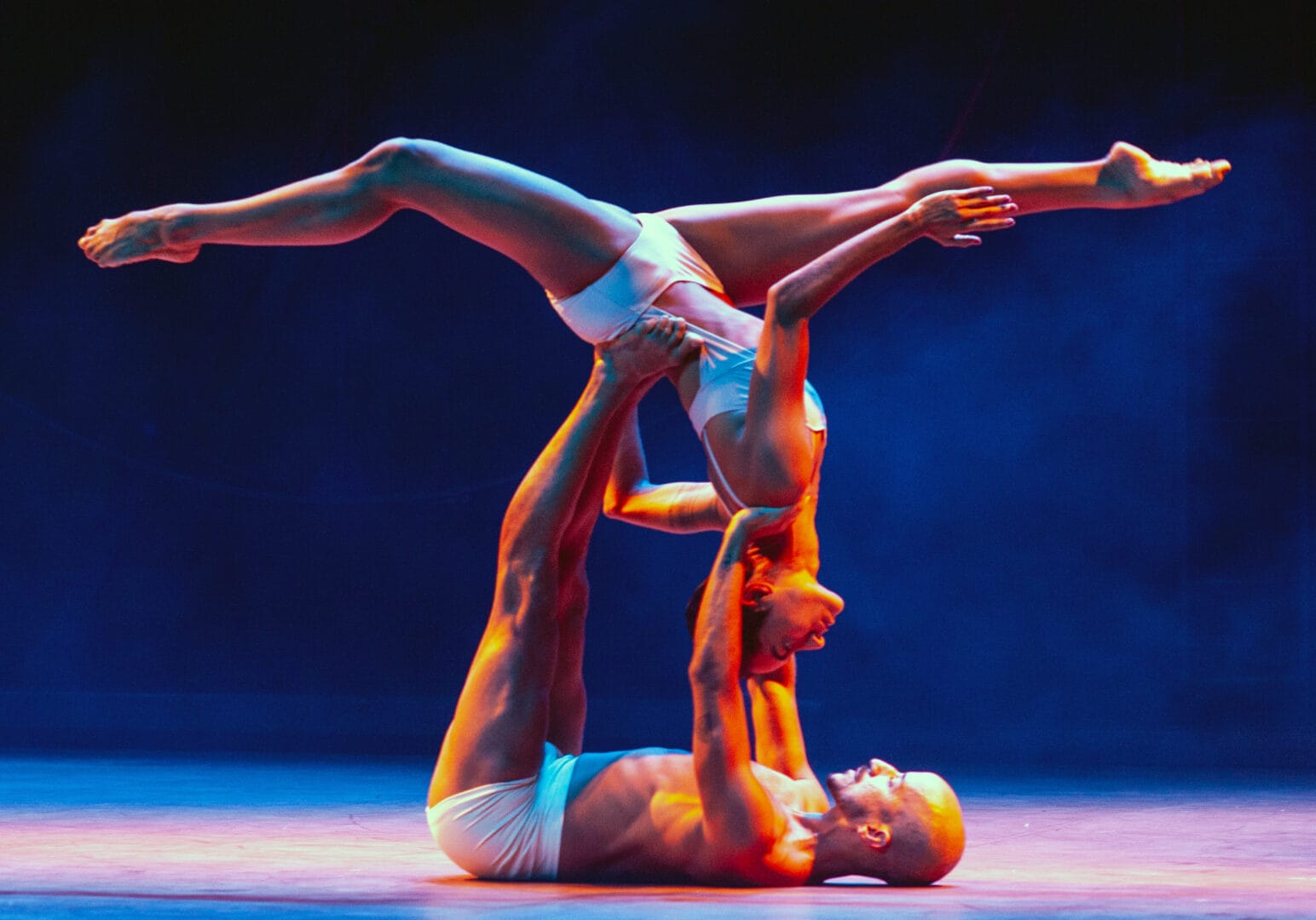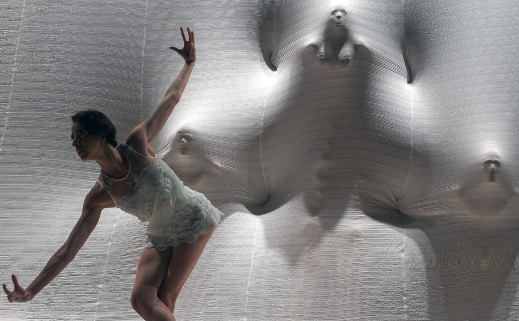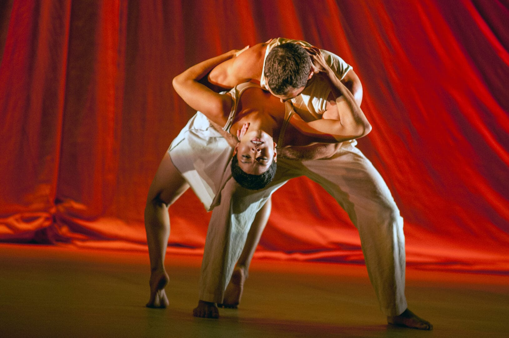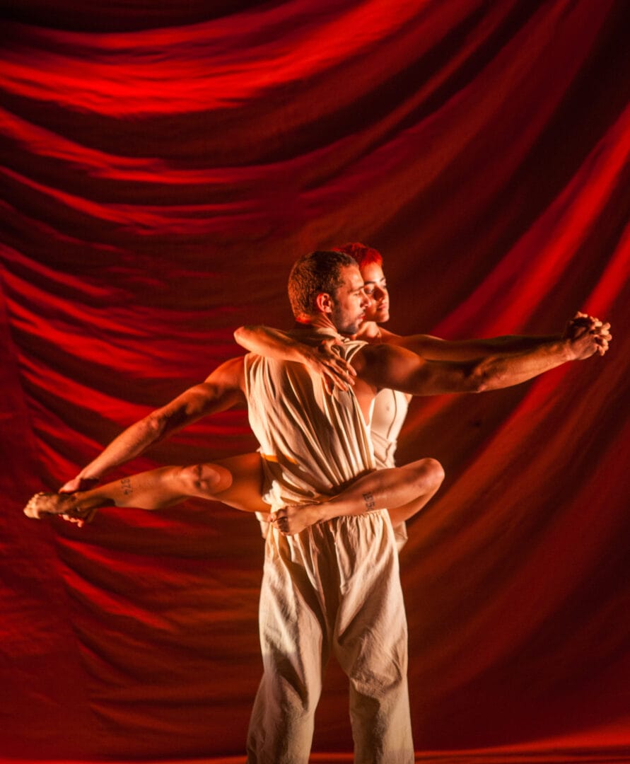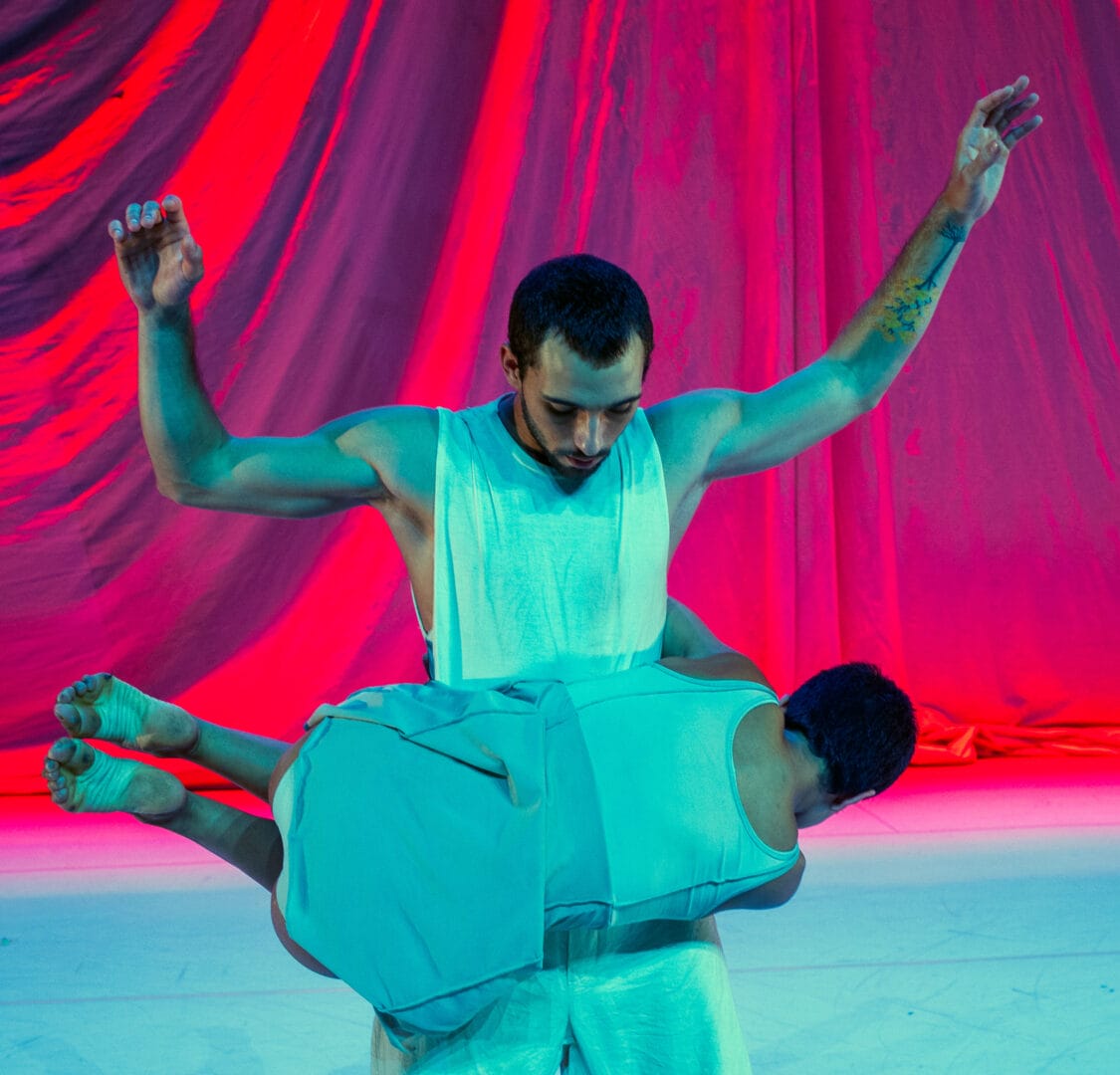 O resultado é um espetáculo inédito, estruturado em dois atos que dialogam entre si. No primeiro, a densidade: movimentos mais próximos do chão, atravessados por força, risco e visceralidade — como na coreografia com cerca de 90 vasos, onde a delicadeza convive com a tensão. No segundo, a leveza: a suspensão, a roda gigante de sete metros, o corpo em estado de voo.