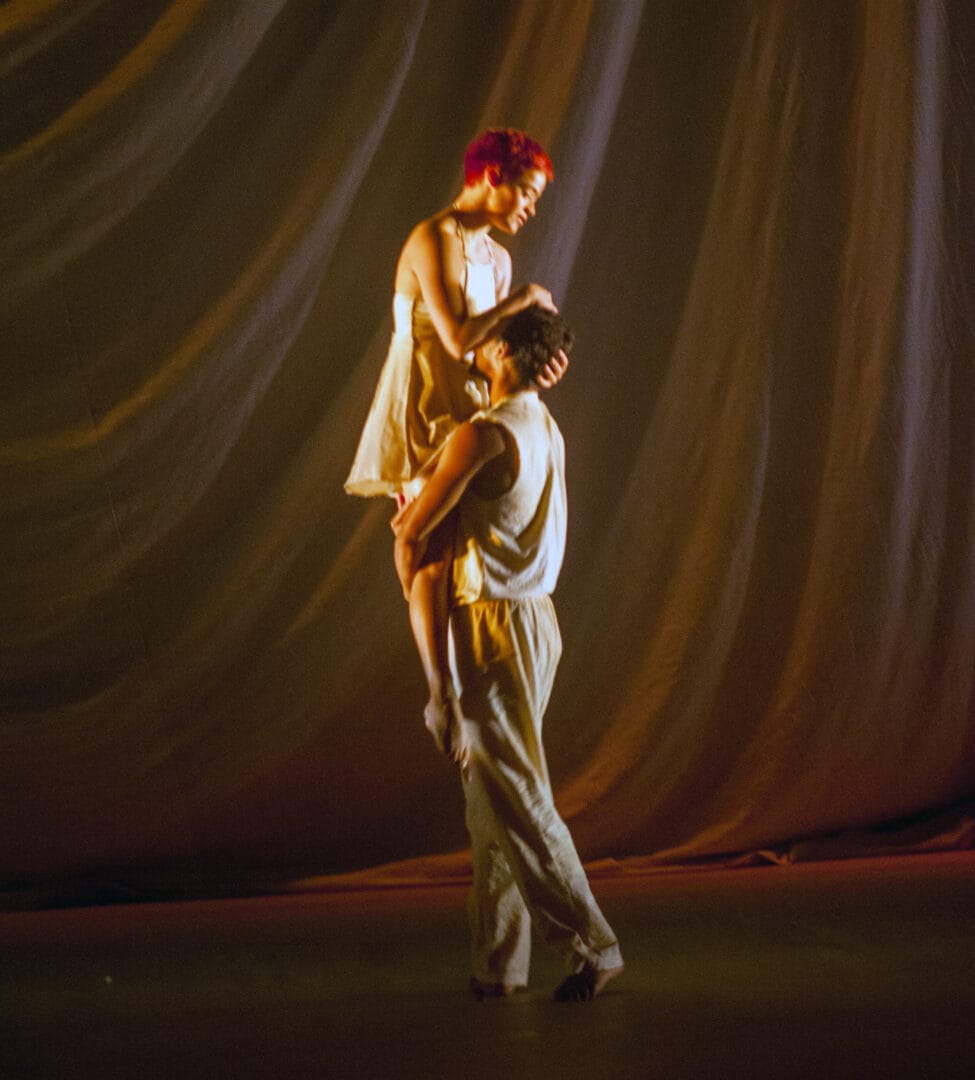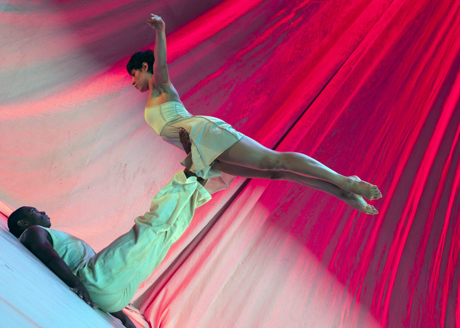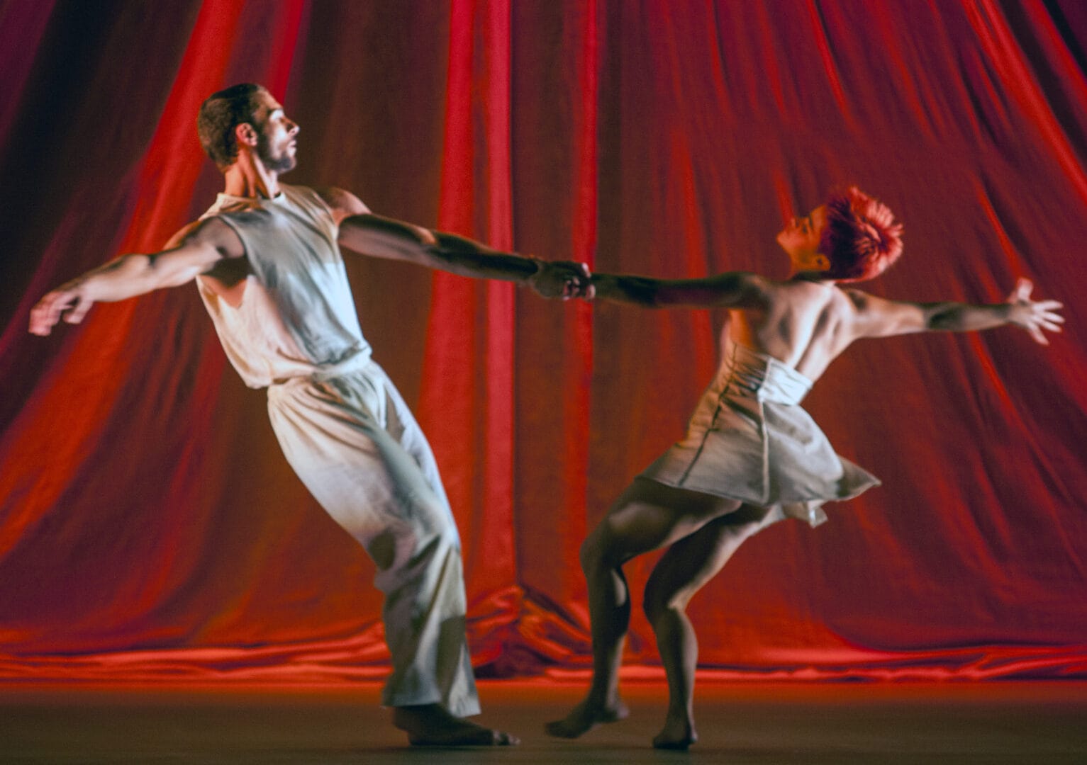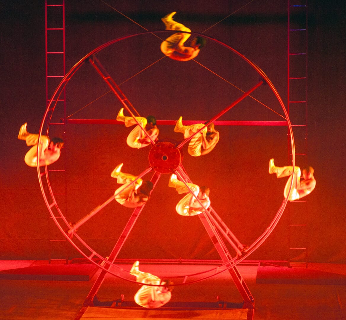 O resultado é um espetáculo inédito, estruturado em dois atos que dialogam entre si. No primeiro, a densidade: movimentos mais próximos do chão, atravessados por força, risco e visceralidade — como na coreografia com cerca de 90 vasos, onde a delicadeza convive com a tensão. No segundo, a leveza: a suspensão, a roda gigante de sete metros, o corpo em estado de voo.