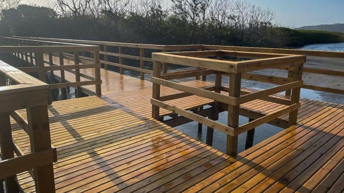 No ano passado, o deck foi reformado pela Prefeitura de Florianópolis, com a estrutura de eucalipto sendo refeita, além do piso e do guarda-corpo. O deck é considerado grande, com 278 metros quadrados de área total. Os amantes de pôr do sol podem passar por três longas passarelas, com mata nativa ao longo do trajeto, até chegar à areia, já na praia da Cachoeira do Bom Jesus.