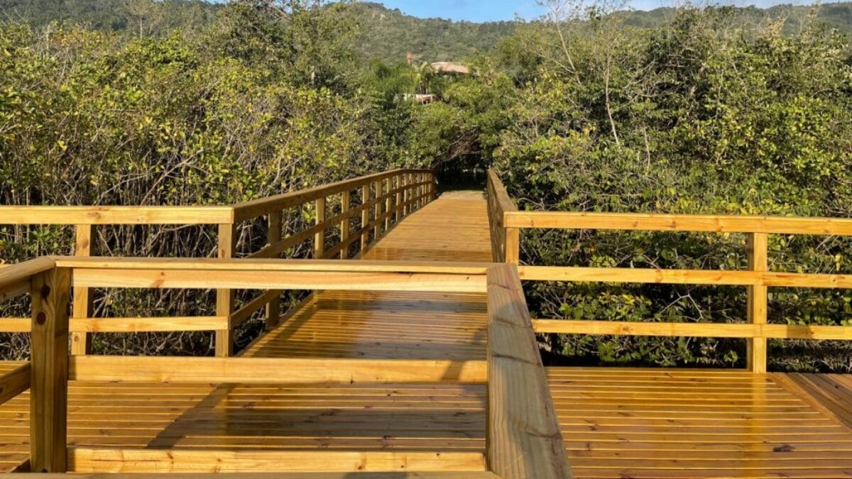 Quem passa pela Cachoeira do Bom Jesus, em Florianópolis, no fim da tarde, não consegue fazer outro movimento a não ser olhar para o céu, com o belo pôr do sol, que parece se exibir para quem para e o contempla. Nas redes sociais, um lugar especial para admirá-lo viralizou: no maior deck público de acesso à praia da Cachoeira do Bom Jesus, que passa sobre um riozinho que corre paralelo ao mar.