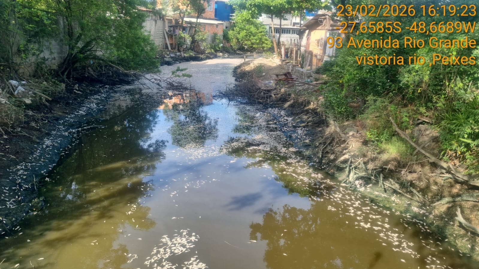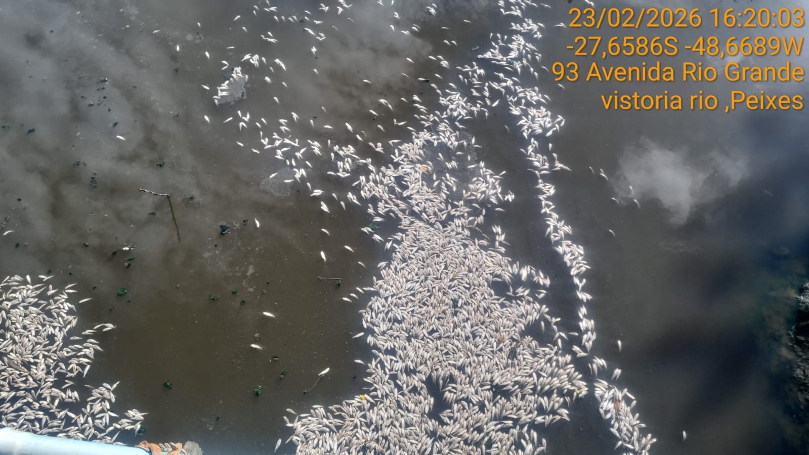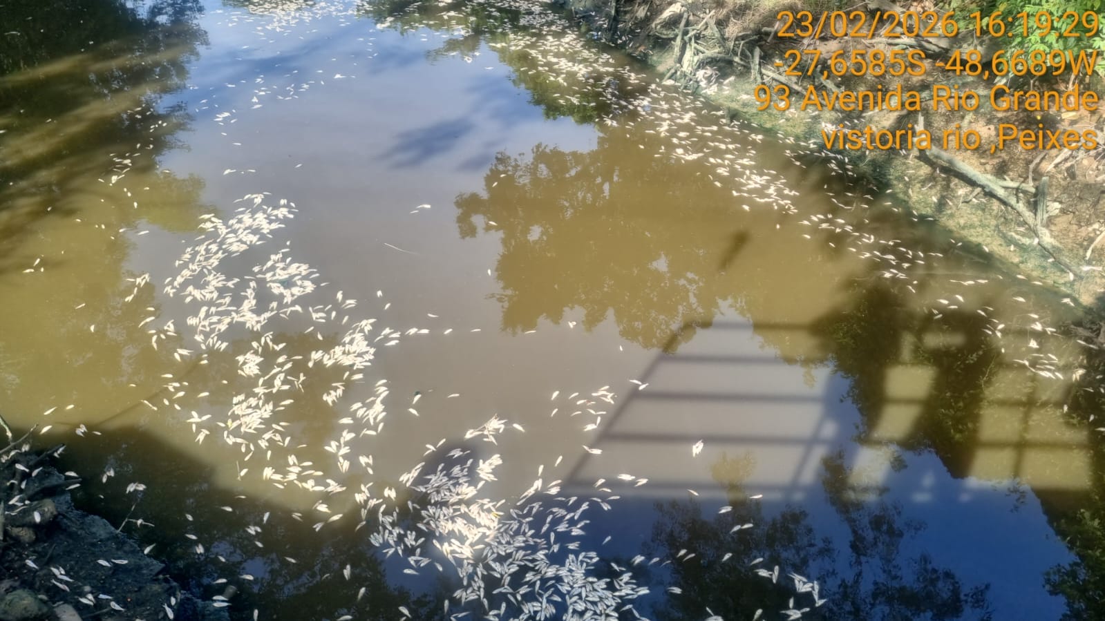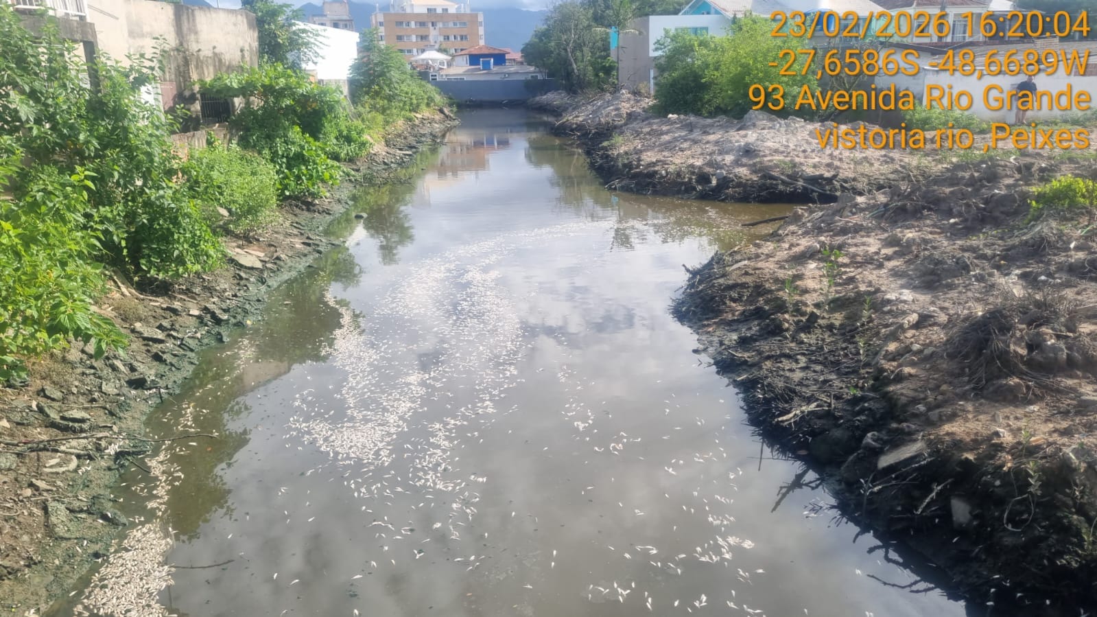 Milhares de peixes mortos foram encontrados boiando na superfície do Rio Imaruim, no trecho da Avenida Rio Grande, na região Central de Palhoça, na Grande Florianópolis na segunda-feira (23). As imagens registradas no local rapidamente repercutiram entre moradores, levantando questionamentos sobre o que pode ter provocado a mortalidade dos animais. (veja fotos abaixo)