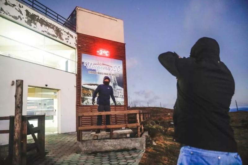 Já no Extremo Oeste, Oeste, litoral da Grande Florianópolis e Sul, as menores temperaturas oscilam entre 0°C e 5°C. No Médio Vale (região de Blumenau), Norte (Joinville) e Litoral Norte (Itajaí e Balneário Camboriú), a tendência é de que os menores índices fiquem entre 3°C e 8°C.