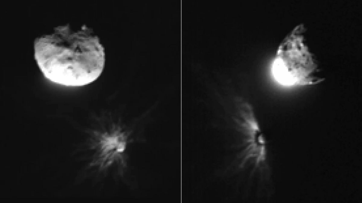 Lançada em novembro de 2021, a nave não tripulada DART atingiu seu alvo, a pequena lua asteroide Dimorphos (com cerca de 160 metros de diâmetro), em 26 de setembro de 2022, a uma velocidade de aproximadamente 22.500 km/h. O alvo Dimorphos orbita um asteroide maior chamado Didymos, e o sistema binário foi escolhido porque seu movimento orbital lento e fácil de monitorar permitiu que os cientistas medissem com precisão a mudança resultante no período orbital após a colisão.