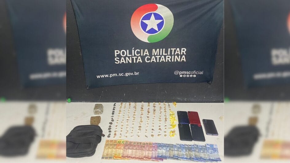 Durante a ação, um dos suspeitos foi abordado pelos policiais portando uma bolsa com entorpecentes e dinheiro. Com ele, foram apreendidos cerca de 75 gramas de crack, distribuídos em 155 pedras, além de 189 gramas de maconha, sete gramas de cocaína e R$ 308 em dinheiro, valor que, segundo a polícia, pode estar ligado à atividade criminosa.