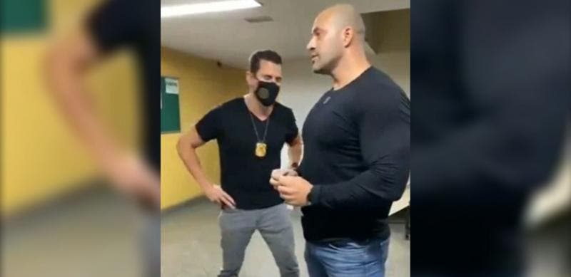 O parlamentar foi conduzido ao local para realizar o exame de corpo de delito, antes de ser transferido para a Superintendência da Polícia Federal no Rio de Janeiro. No IML, reagiu ao pedido de uma policial civil para que usasse a máscara, apontou o dedo e levantou a voz para ela.