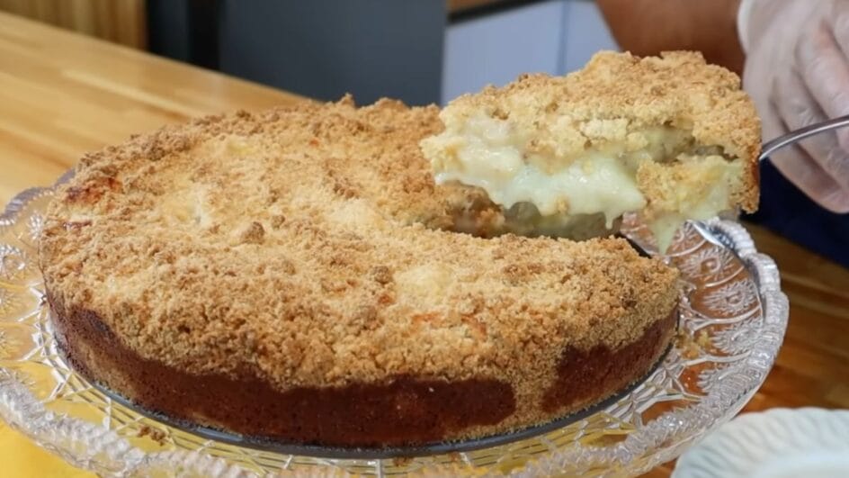 A receita leva ingredientes acessíveis e é prática para fazer em casa. A cuca é caracterizada por ter massa fofinha e ser coberta por uma farofa doce e crocante, chamada de Streusel (“espalhado” ou “polvilhado”).
