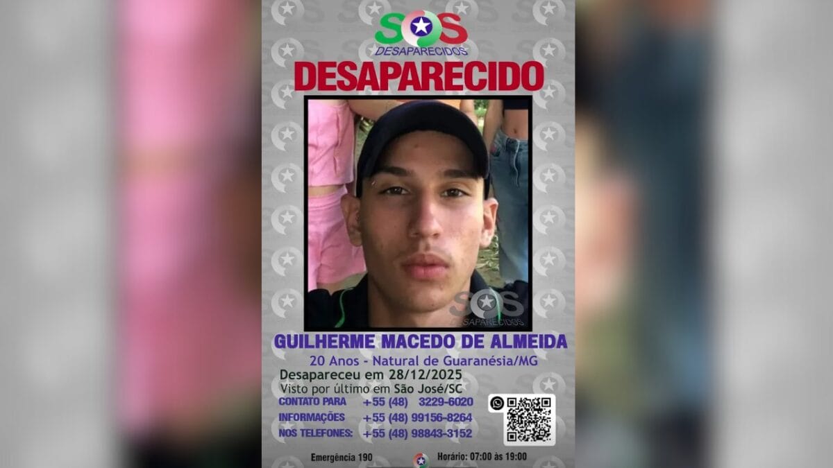 Bruno Máximo da Silva, de 28 anos, Daniel Luiz da Silveira, 28, Guilherme Macedo de Almeida, 20, e Pedro Henrique Prado de Oliveira, 19, estão desaparecidos desde domingo (28) em São José, na Grande Florianópolis. Os jovens são de Minas Gerais e se mudaram para Santa Catarina em busca de oportunidades de trabalho recentemente, segundo a família. O caso foi registrado pela Polícia Militar, através do SOS Desaparecidos. Já a Polícia Civil investiga o caso por meio da Delegacia de Desaparecidos.