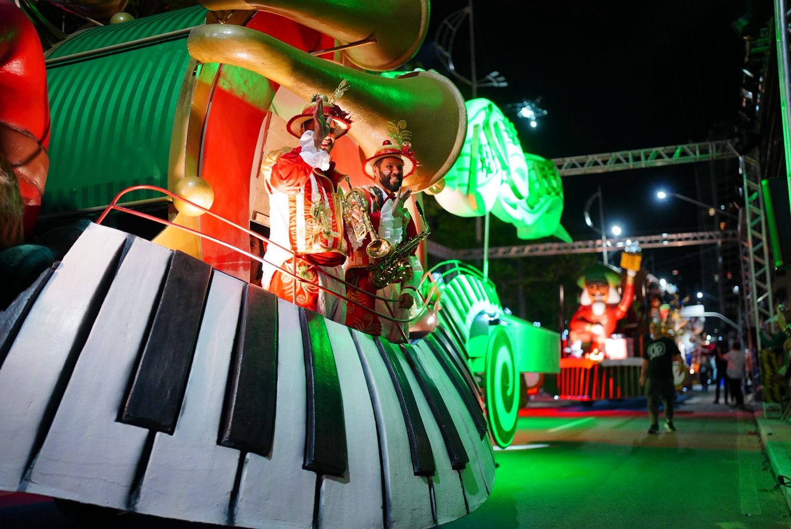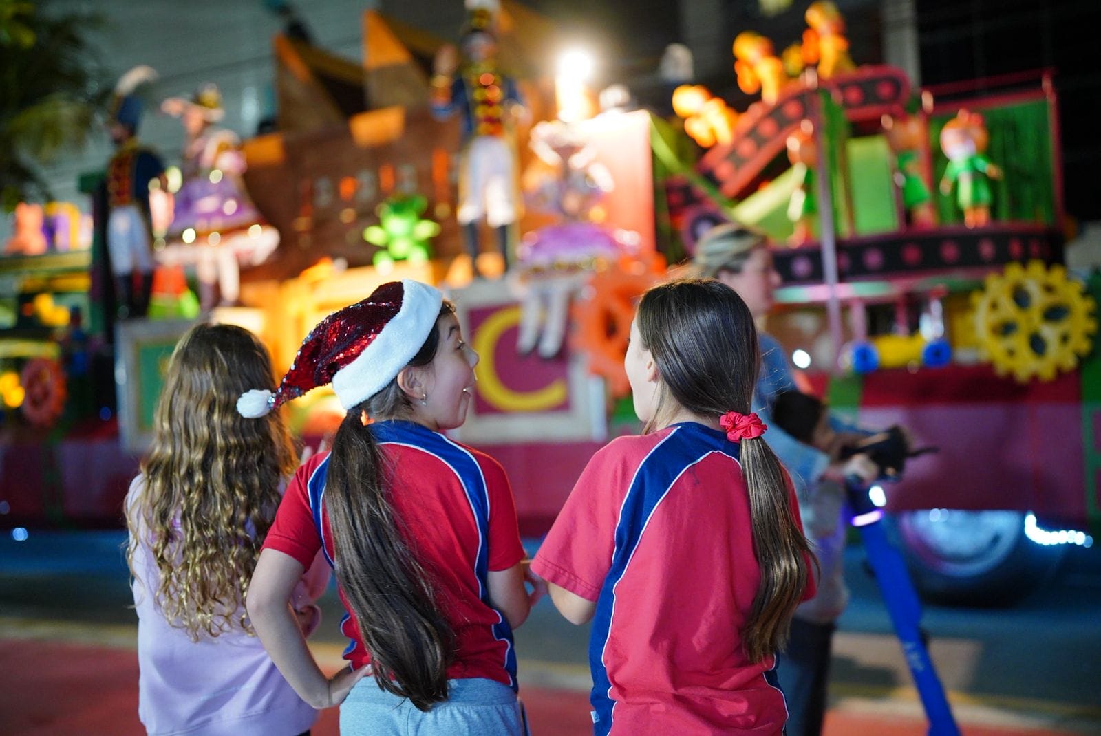 Cinco carros alegóricos também compõem a apresentação e foram confeccionados especialmente para o Viva o Natal BC 2025. Entre eles, os maiores são o Trenó, que leva o Papai Noel em uma estrutura de 15 metros de comprimento, e a Fábrica de Brinquedos, com 15,75 metros.