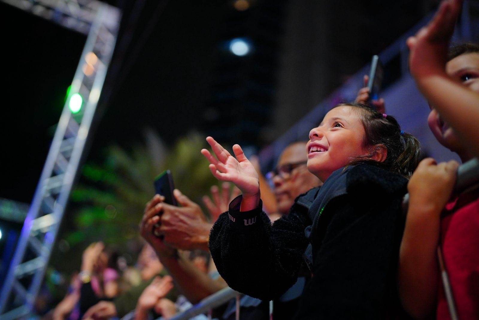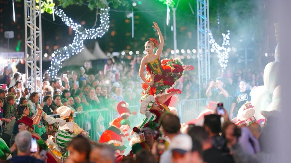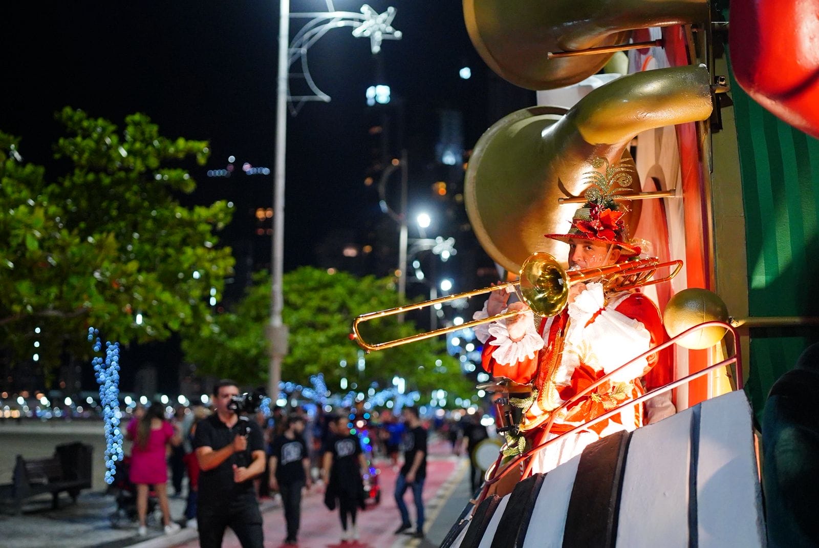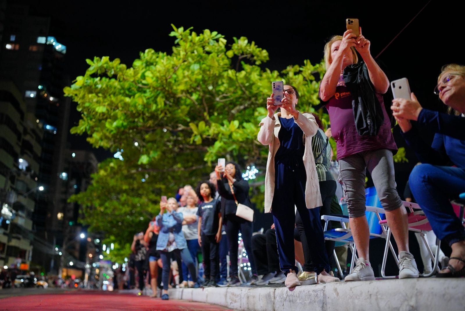 O primeiro desfile de Natal de Balneário Camboriú, ocorrido na noite desta quarta-feira (19), levou uma multidão para a orla da Praia Central. De acordo com a prefeitura, responsável pelo evento, cerca de 30 mil pessoas assistiram ao espetáculo ao longo de sete quilômetros da Avenida Atlântica.