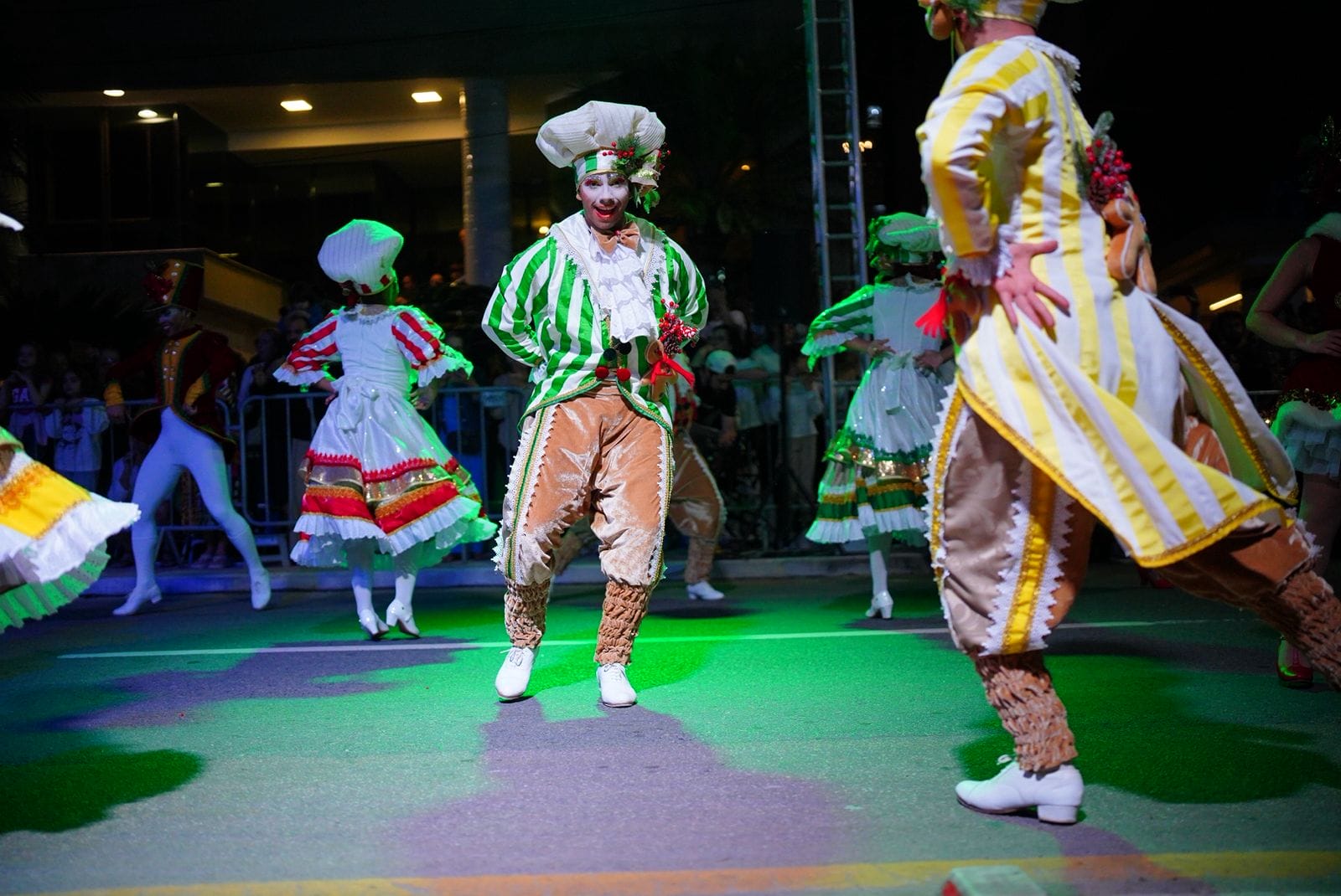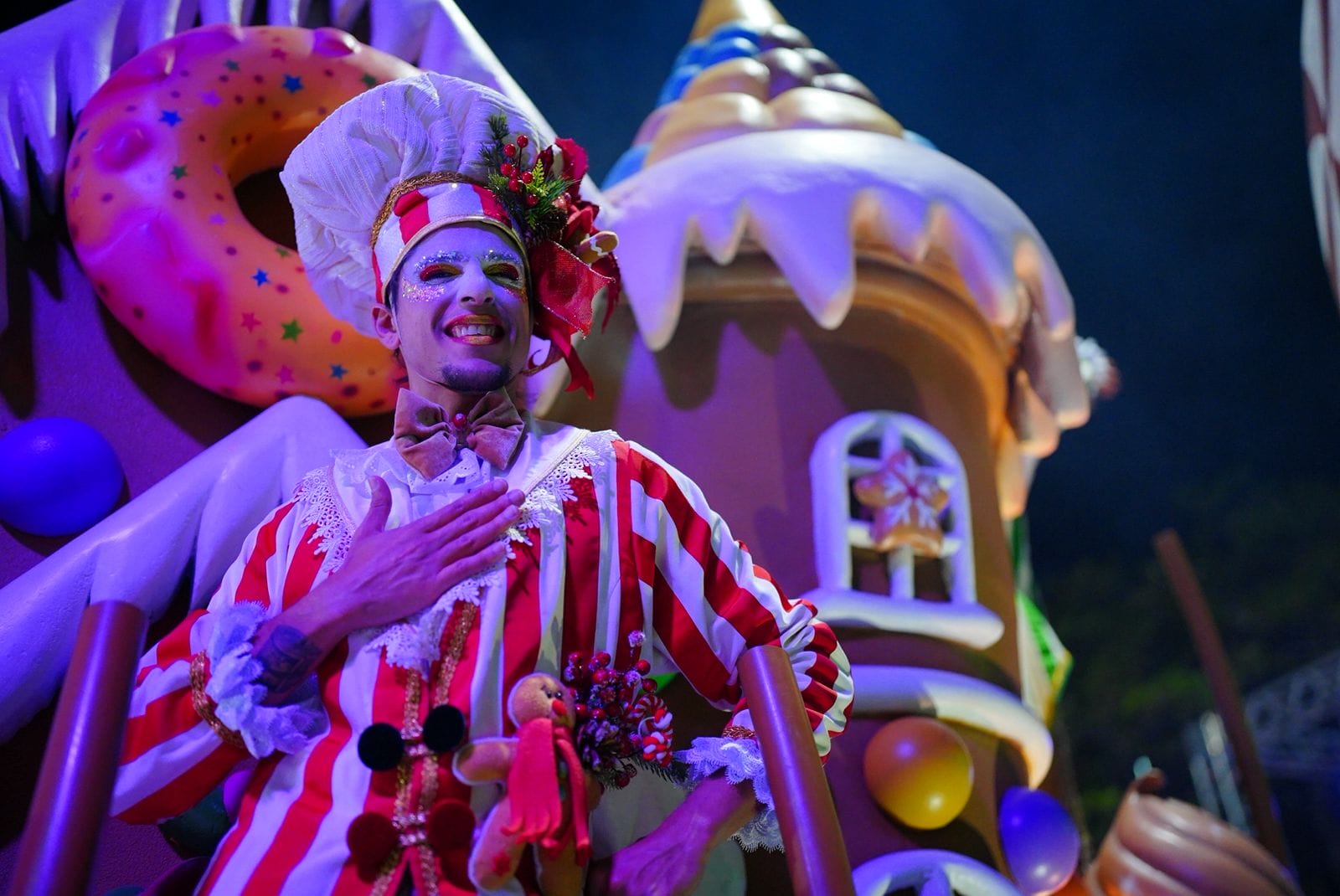 O desfile começou na Barra Sul, na Rua 4900, e teve três pocket shows ao longo do trajeto: na altura da Rua 3000, na Praça Tamandaré e próximo à Rua 1131. Um Papai Noel e cerca de 50 artistas — entre cantores, atores, acrobatas e bailarinos — apresentaram uma performance inédita.