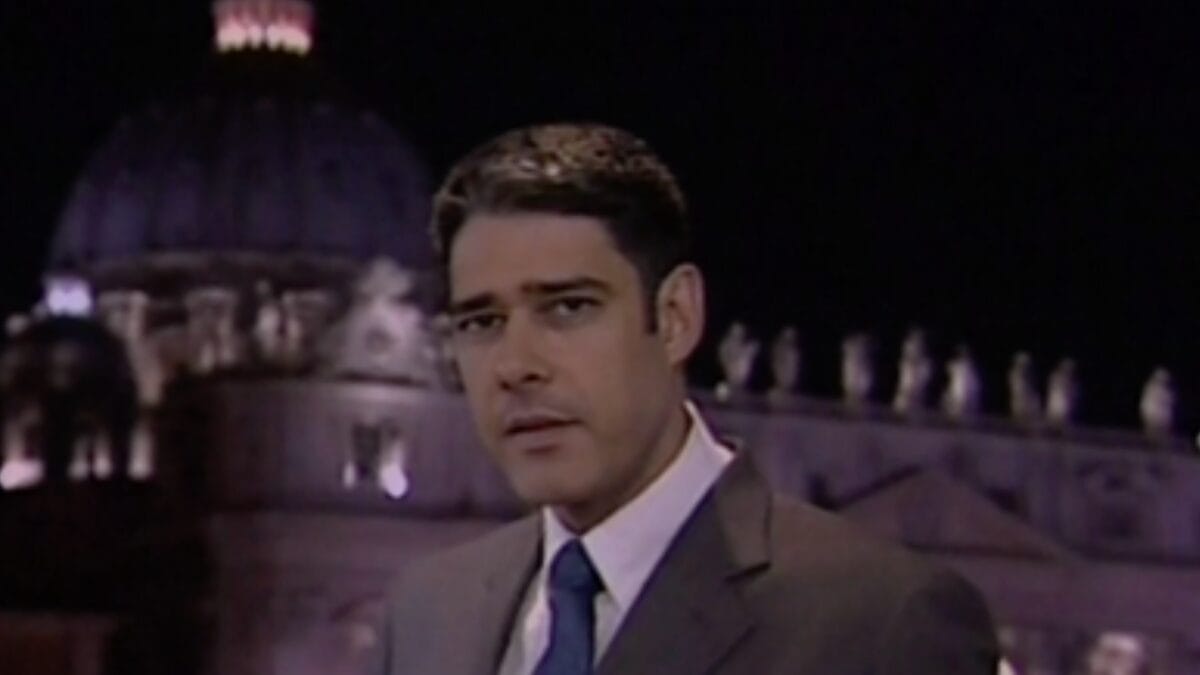 William Bonner cobriu o conclave do Papa Bento XIV, em 2005 (Foto: TV Globo, Reprodução)