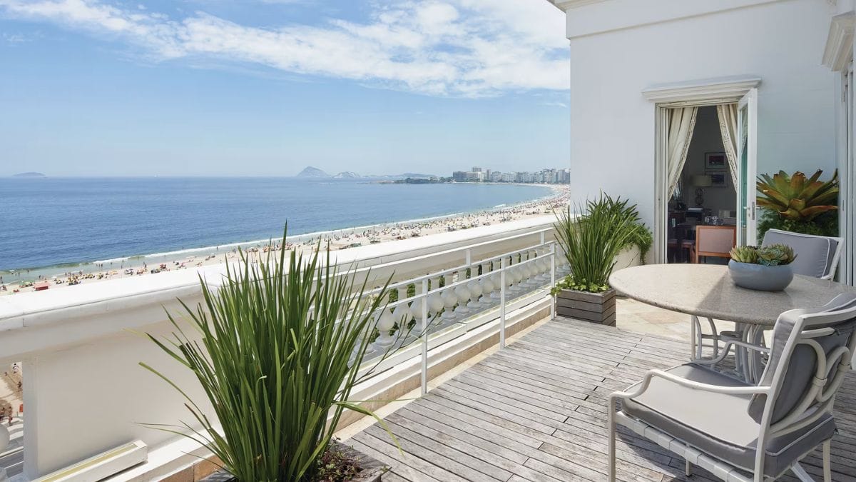 A suíte de Odete fica no último andar do hotel e tem acesso exclusivo. O tamanho impressiona porque é o mesmo de muitos apartamentos e casas pelo Brasil. O local tem uma varanda privativa, vista para o mar de Copacabana.