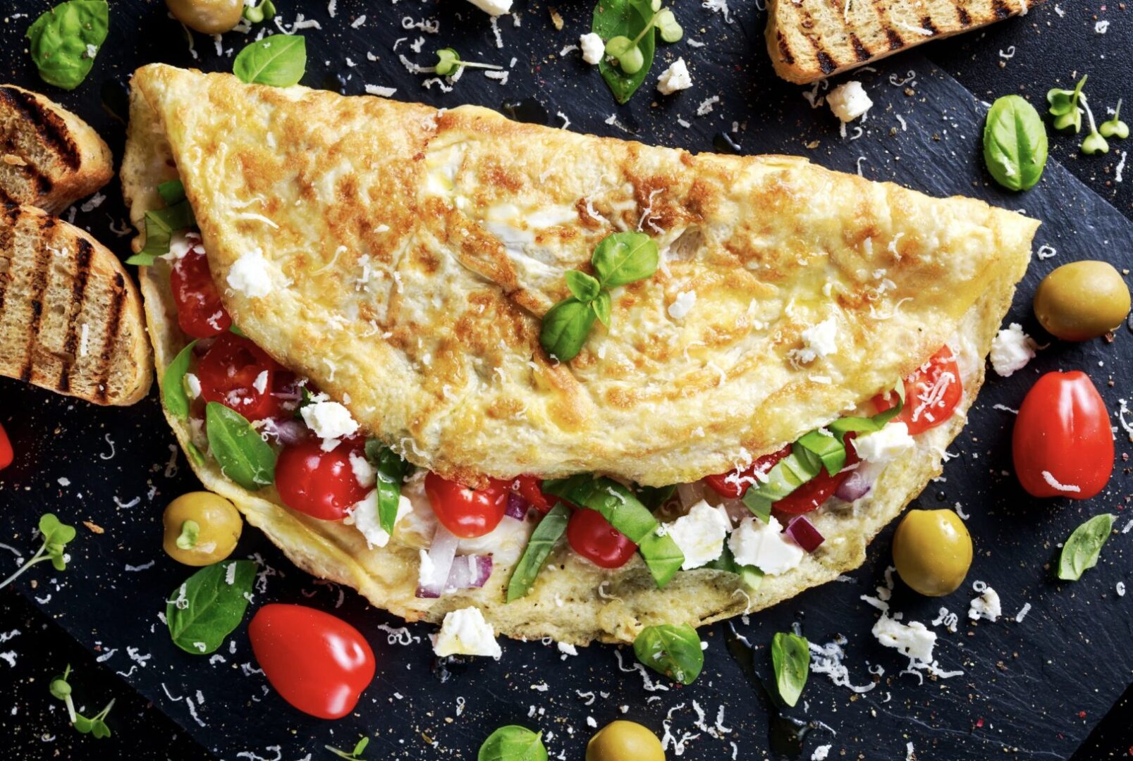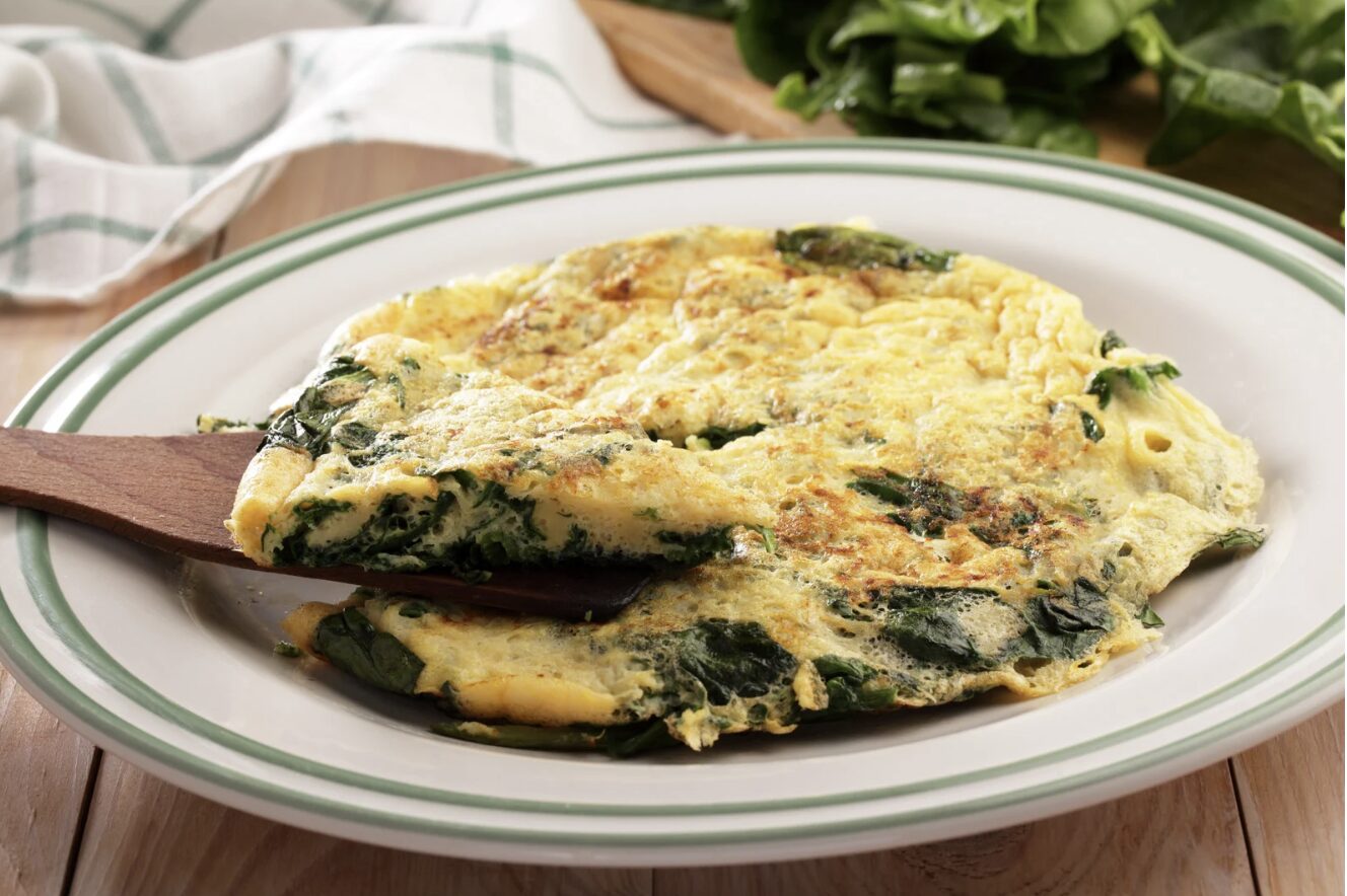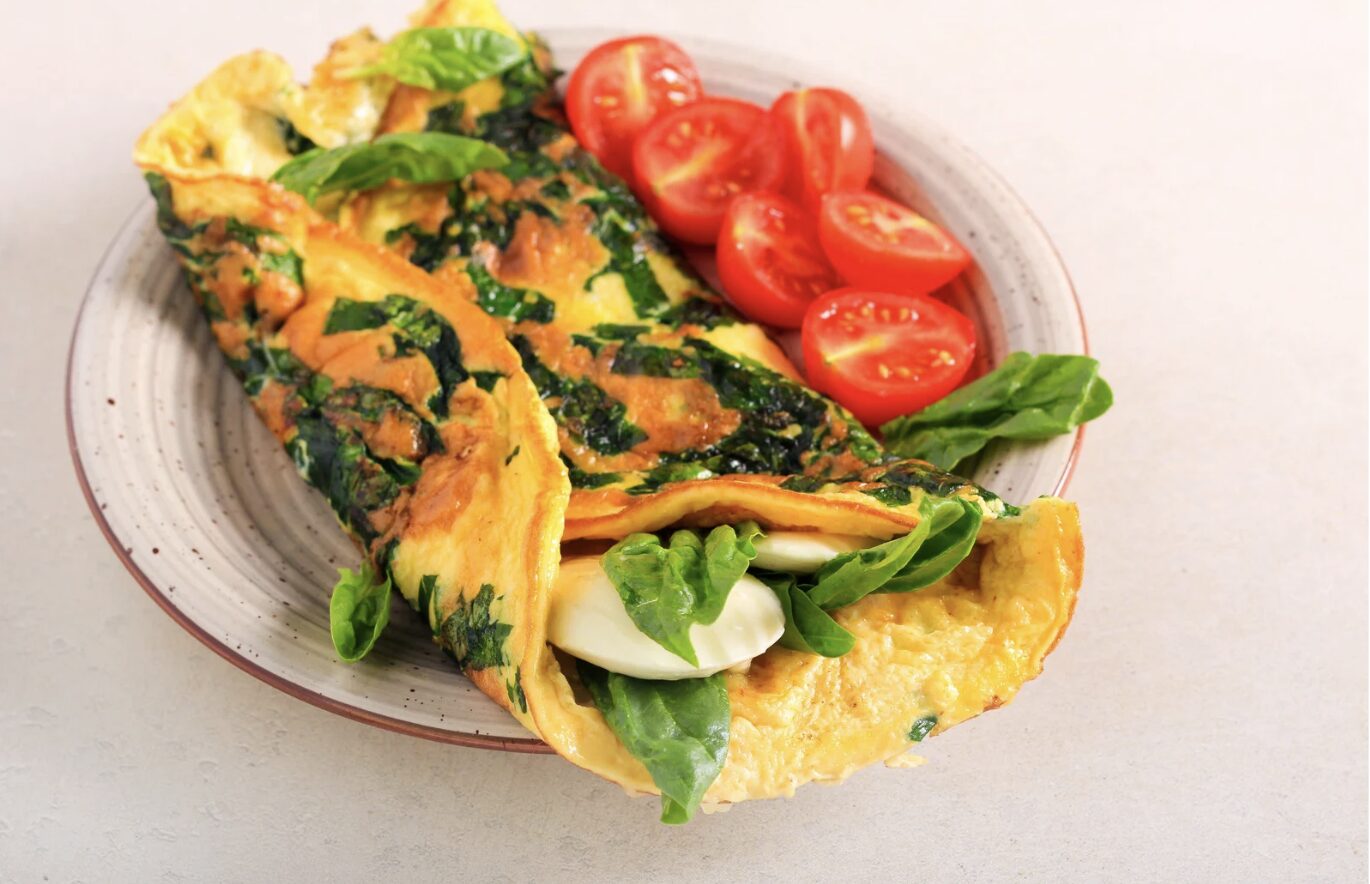 Alternativa: Omelete com vegetais (espinafre, tomate, cebola) e 1 fatia de pão integral