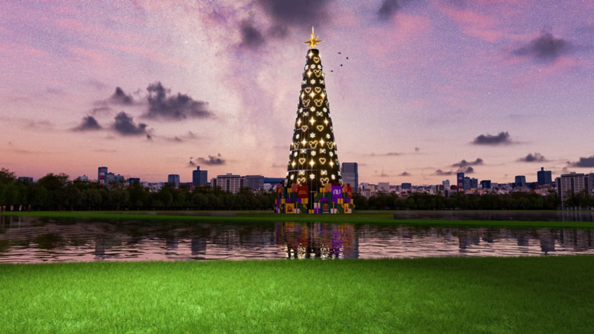 Uma árvore de Natal de 35 metros também é instalada no local. Ela ficará no final do caminho do túnel de luz, na pequena ilha do lago do Barigui.