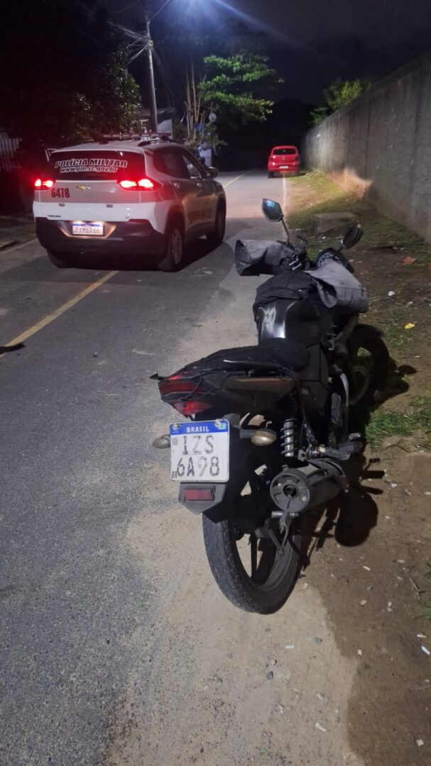 A PM fez buscas e encontrou a suposta motocicleta abandonada. Um carro que teria auxiliado também foi localizado. No interior do veículo havia balaclavas e drogas. Apesar das provas apreendidas, nenhum suspeito foi preso.