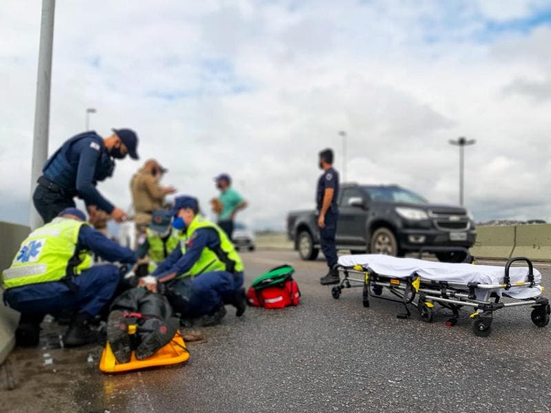Conforme a Guarda Municipal, um acidente foi com o condutor de uma motocicleta que perdeu o controle do veículo ao bater no retrovisor de um carro. Ele caiu na pista, teve ferimentos leves e foi conduzido ao hospital por uma viatura do Corpo de Bombeiros.