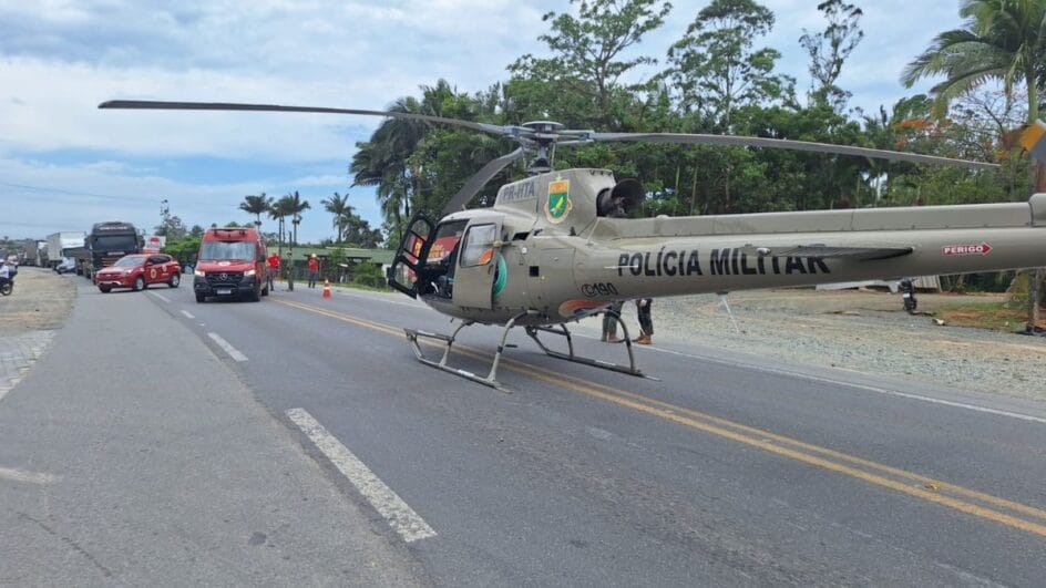 Dois graves acidentes mobilizaram helicóptero e equipes de socorro para resgatar as vítimas na BR-280 em Araquari, no Planalto Norte de Santa Catarina. Os dois casos aconteceram entre o final da manhã e início da tarde desta terça-feira (16), em um intervalo de uma hora. As duas vítimas, um motorista e um pedestre, foram encaminhados com urgência ao hospital.