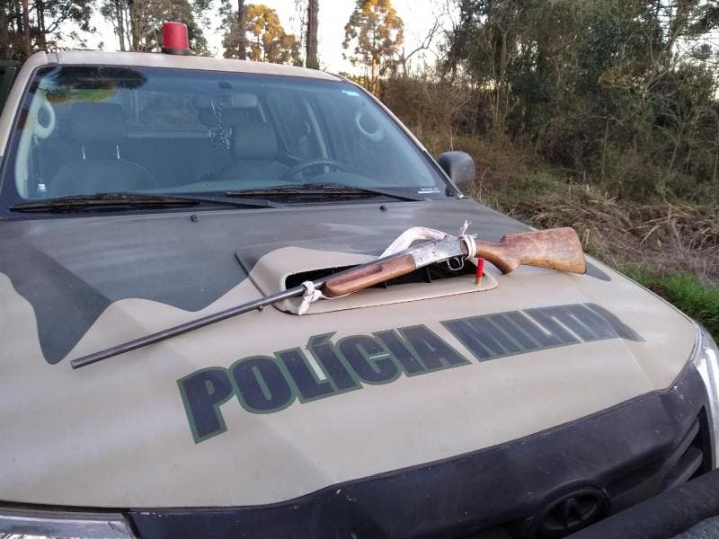 A polícia afirma que localizou o armamento escondido na mata, uma espingarda calibre 36 de um cano municiada com um cartucho intacto, ambos teriam negado a propriedade da arma. A PMA prendeu os dois que foram encaminhados até a 26ª – Delegacia Regional de Polícia de Campos Novos.