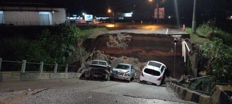 A cabeceira da ponte cedeu na noite do dia 21 de abril. Três carros, com quatro pessoas, trafegavam sobre a estrutura quando ocorreu o desabamento. Apesar do susto, ninguém se feriu. Além de comprometer o trânsito, o episódio afetou o abastecimento de água na região e houve vazamento de gás.