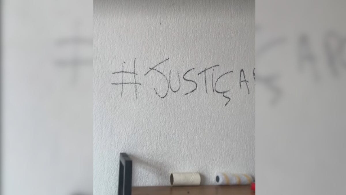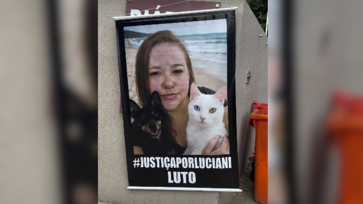 Outro pôster pendurado no muro da pousada mostra uma foto da corretora gaúcha com seus animais de estimação, também com um pedido por justiça. Em uma das paredes do imóvel de Luciani, a família também escreveu os dizeres “assassinos”.